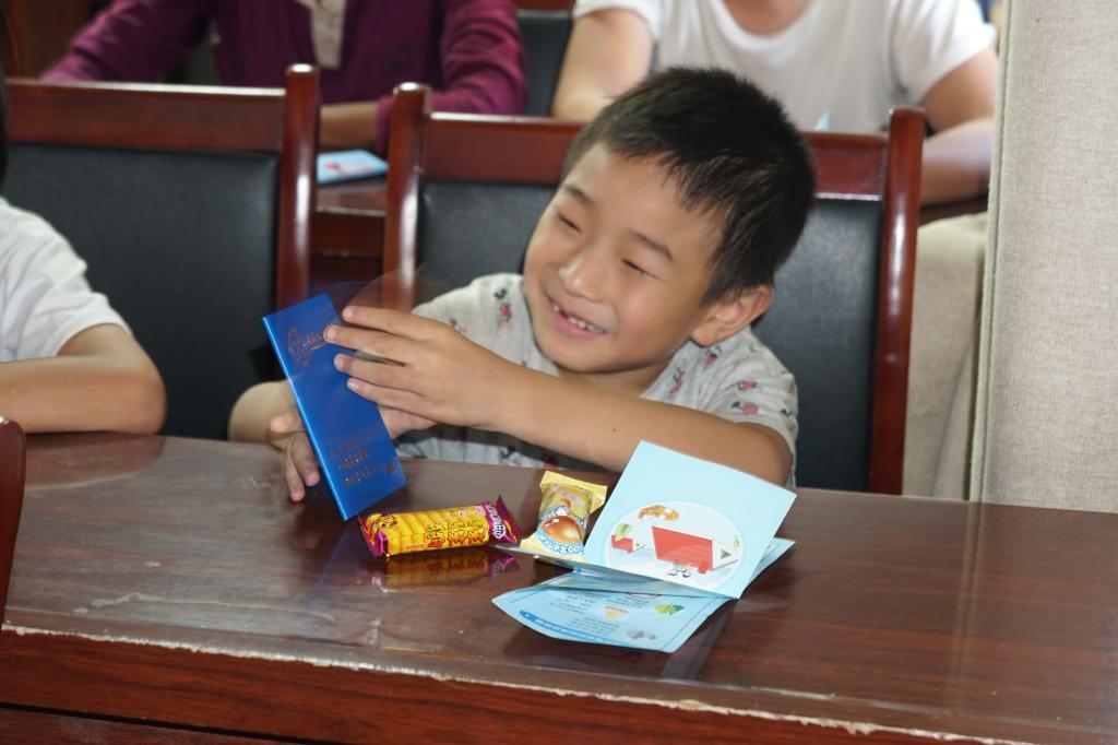 回答问题后获得奖品的孩子