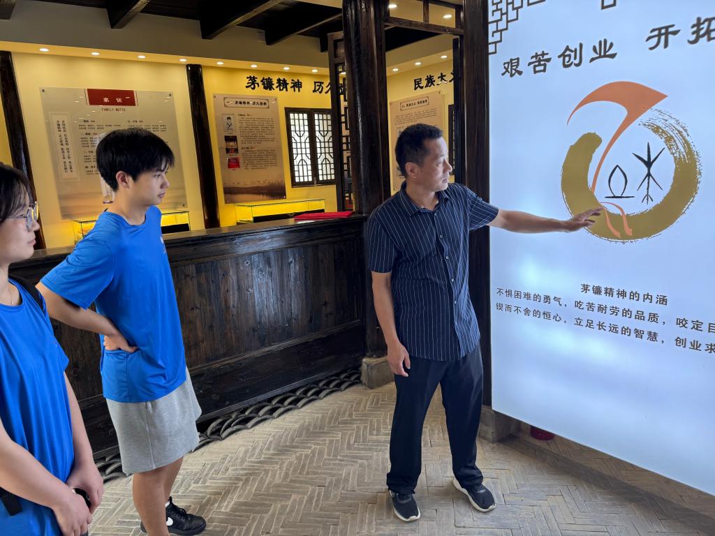 实践队首站来到杜氏家风馆,了解到杜氏先祖早年以茅镰刀开垦荒野,茅镰刀不仅是开垦工具,更成为杜氏族人坚韧不拔、开拓进取的精神象征,代代相传的“茅镰精神”,正是这种精神融入对傩戏技艺的守护中,为傩戏延续注入精神底气。