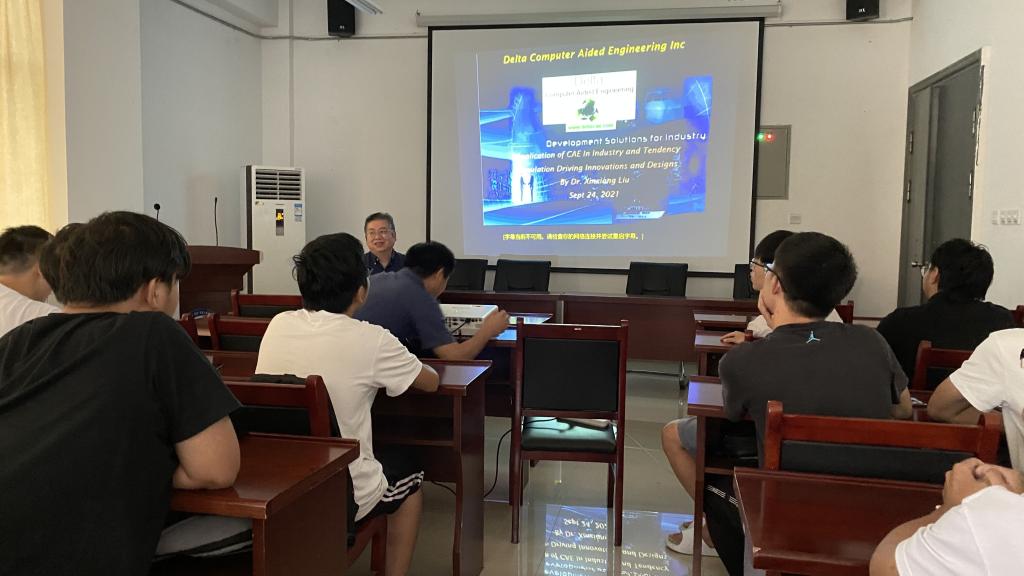 邀请,9月24日下午无锡三角洲计算机辅助工程有限公司总裁兼总工程师刘新祥来院作学术交流,并在院报告厅作题为《CAE技术在工业中的应用及发展趋势》的学术报告。报告会由院长经来旺教授主持,部分青年教师以及工程力学专业本科生共计80余人参加了报告会。