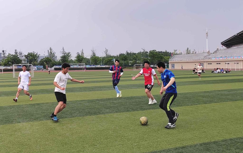于5月11日下午在信义体育场举办了“师生足球友谊赛”。随着一声哨响,比赛开始,学生院队占据主动,长途奔袭单刀射门、圆月弯刀任意球破门;后半场,教师队迅速调整站位和进攻方式,巧妙的短传渗透配合,撕开了学生院队的防线……。高温也没能阻挡队员们的热情,场面非常精彩,赛场上回荡着队员和场边球迷的加油声。比赛结束后大家纷纷合影留念,记录这毕业前夕最珍贵的时光。