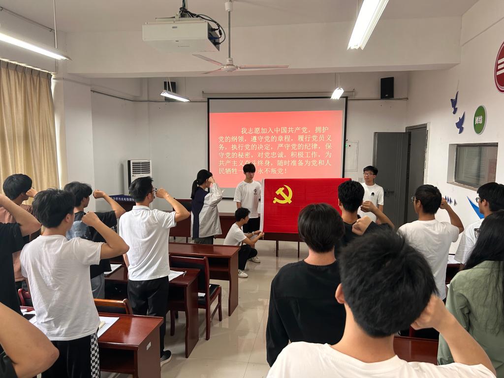 学习结束后,由党支部组织委员庄静文同学作为领誓人带领支部全体党员面向党旗重温入党誓词。