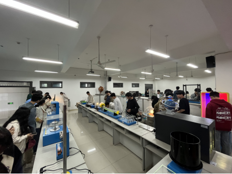 此次课程以“物理文化思政课+物理知识讲解+学生操作体验”为主要形式。在物理文化思政课环节,实验中心教工党支部书记符青山老师以《增强文化自信,物理科普启航》为题,就中国物理学发展和古现代物理科学家精神与同学们做了深入分享与交流。他指出,当代大学生要向优秀物理科学家学习,坚定文化自信,不断铸就中华文化新辉煌。在物理知识讲解环节,老师们结合科普中心物理器材,给大家演示了奔跑的铁环、轨道怪坡、马德堡半球等众多物理实验,并对实验现象背后隐藏的理论知识作了详细讲解。在学生操作体验环节,同学们在老师的指导下亲自动手操作脚踏发电机、悬浮城堡、雅各布天梯、激光琴、旋转鸟笼、鱼洗盆等近百个实验仪器。各种神奇的物理现象让同学们眼界大开、兴趣盎然,使得同学们从视觉、听觉、触觉等方面全方位、多角度地感受到了实验现象所蕴含的物理知识和魅力,进一步激发了同学们对物理的热爱。