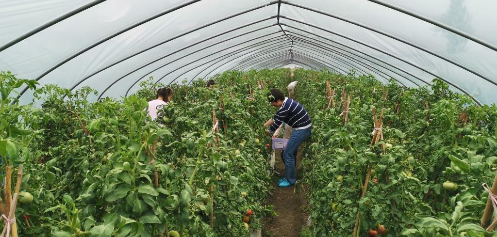 饭后,大家来到西红柿种植采摘基地,在藤蔓掩映间寻找着点缀其中的颗颗“红宝石”、“绿宝石”,西红柿颗颗饱满、颜色鲜艳,园中弥漫着果蔬的香气,小朋友们穿梭在果林里体验着亲身采摘的乐趣。
