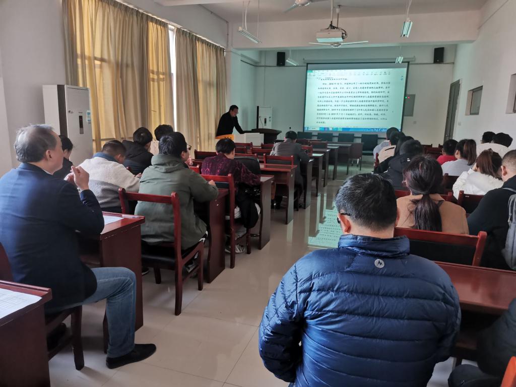 在学院报告厅开展保密知识教育,学院党委副书记孙东升和师生党员参加会议。