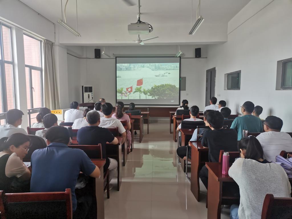 组织一次集中学习。在明道楼A323报告厅,学院党员教师集中观看了庆祝香港回归祖国25周年大会暨香港特别行政区第六届政府就职典礼,认真学习习近平总书记重要讲话精神,共同领悟“一国两制”在香港实践的丰富经验和深刻启示。曾在香港科技大学做了一年访问学者的光电物理系副教授吴宏伟说到,走过泥泞,方知大道珍贵,经历风雨,更觉阳光美好,习近平总书记的重要讲话站在国家发展和民族复兴的高度,思想深刻、内涵丰富,让人倍感振奋。