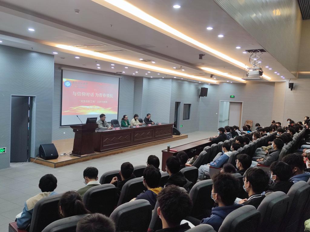 “党员领航工程”之新生教育在图书馆三楼报告厅举行。学院党委书记刘艳和陈雪、李彬、蓝雷雷三位青年博士党员教师,共同为2022级大学生讲授党课《与信仰对话,为青春领航》。