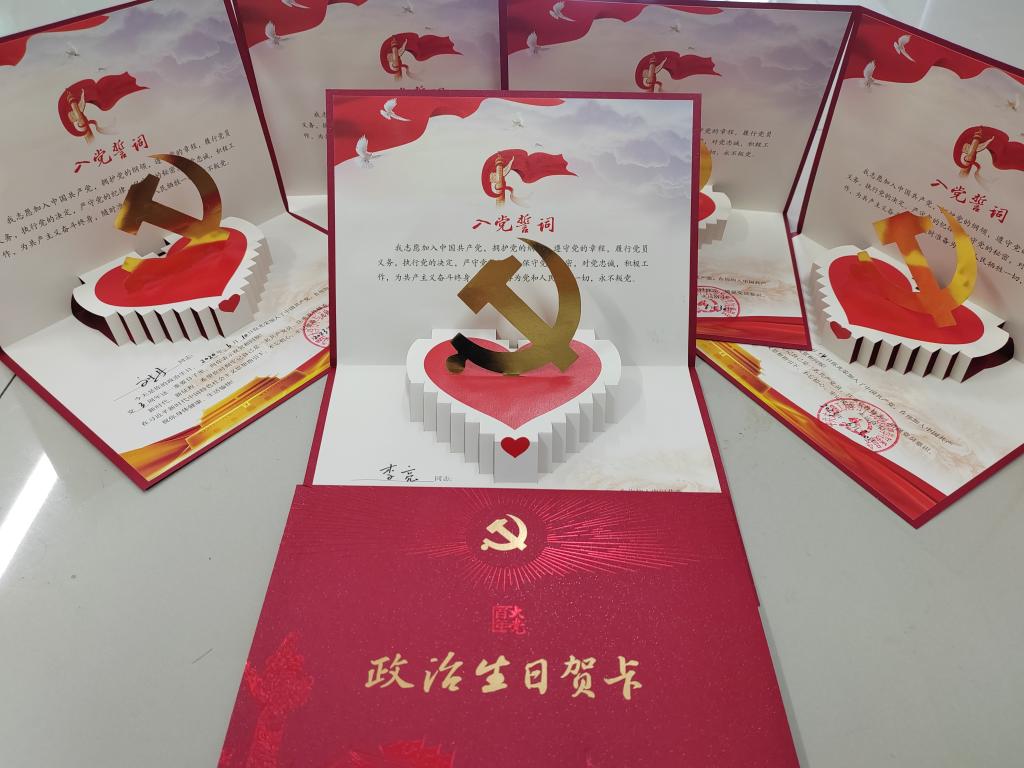 举办一次“生日仪式”。为进一步强化党员的身份意识和宗旨意识,激发党员的政治热情,学院举办教师党员政治生日仪式,为2021年以来入职的党员教师送上了政治生日的问候和祝福。刘艳代表学院党委将印着党徽和入党誓词的“政治生日”贺卡送到党员手中。一张张贺卡,是对党员的激励,更是鞭策,提醒党员时刻牢记党员身份,时刻牢记党的宗旨和使命。