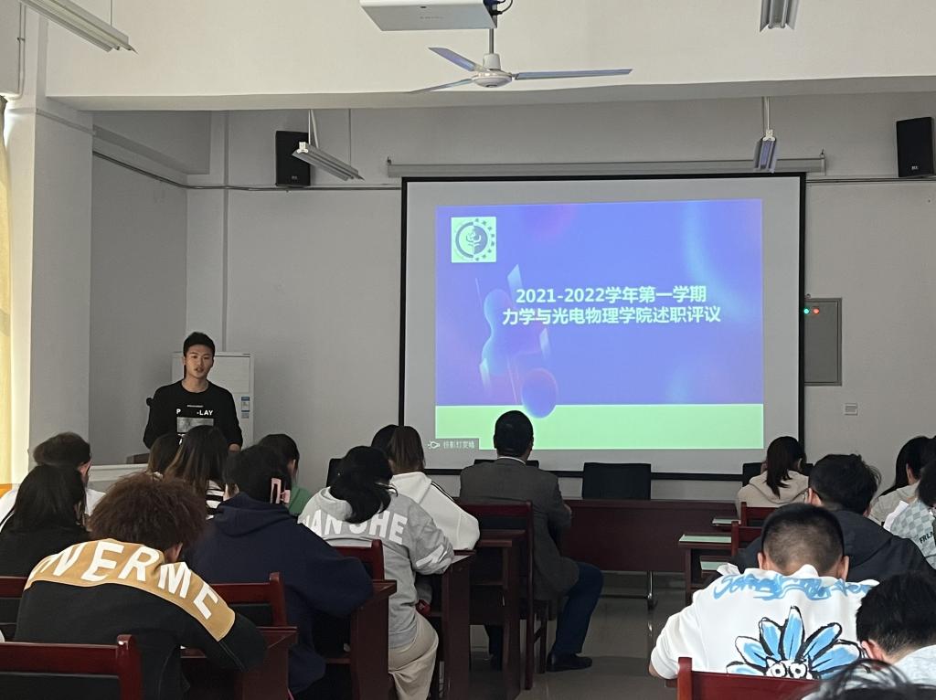 学生会工作人员述职评议大会。学院党委副书记孙东升、学院辅导员冷金兰、校学生会主席团成员以及学生代表参加了评议会。院团委副书记陈阳主持会议。