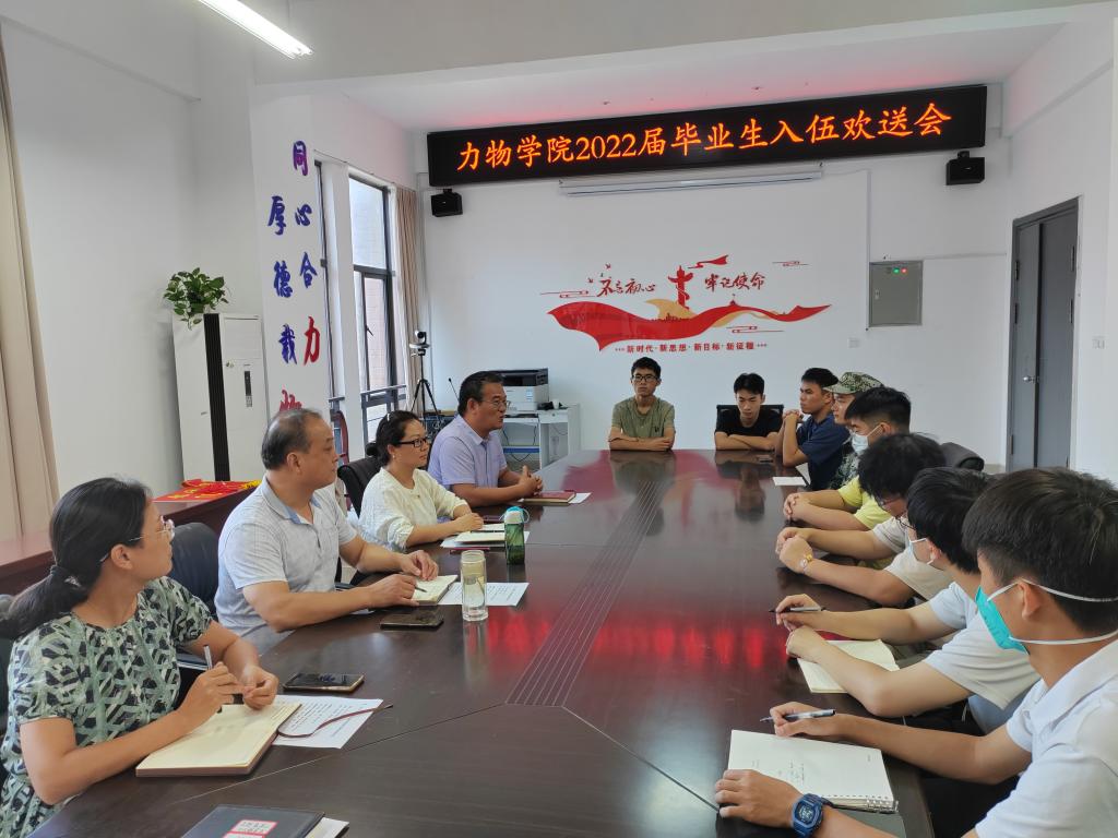 举办2022年秋季大学生应征入伍欢送会,温馨送别2022届入伍毕业生,学院领导班子、2023届毕业生代表、辅导员等参加了会议。会议由党委副书记孙东升主持。