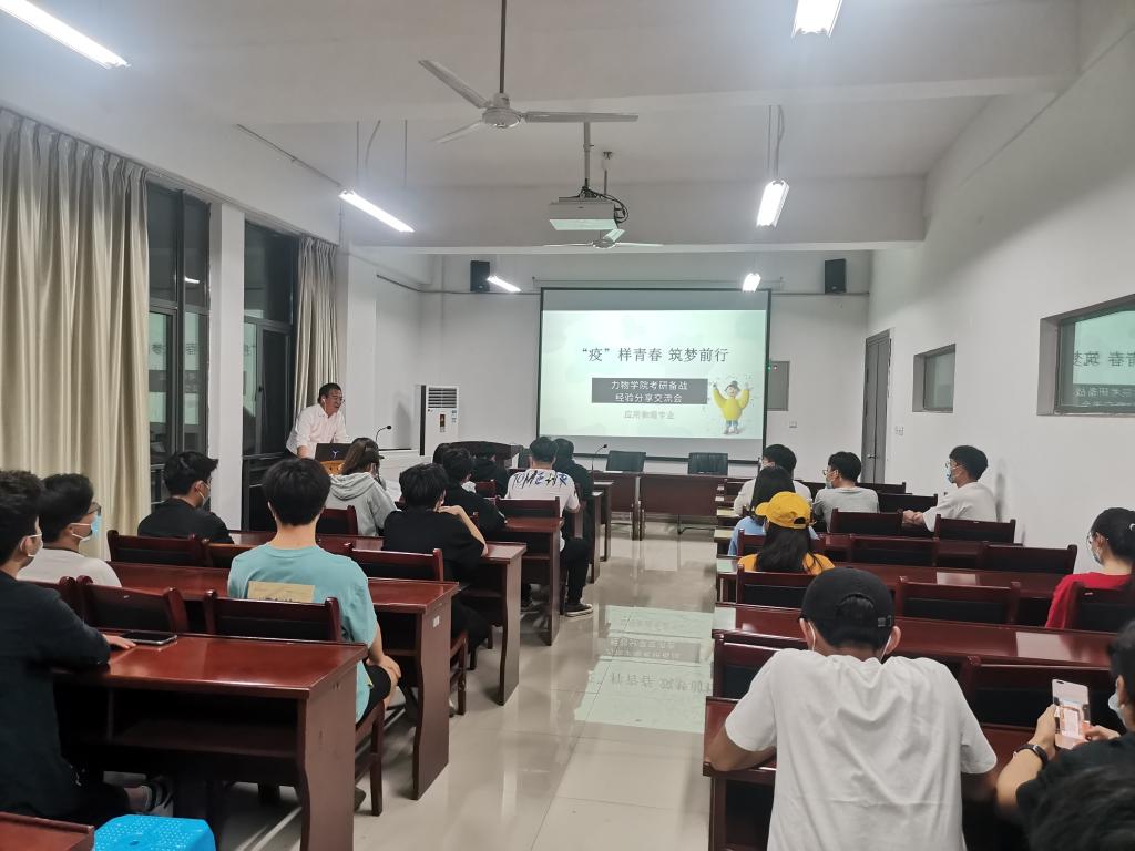 在明道楼报告厅分别举办了应用物理学专业、工程力学专业和光电信息专业三场考研经验分享交流会。学院党委副书记孙东升、学院辅导员、28名考取硕士研究生的学生代表和学院全体学生线上线下共同参与。