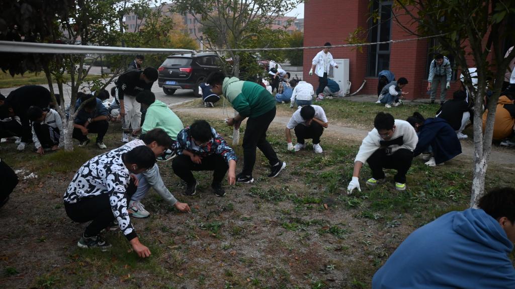 组织2022级新生开展冬季拔草活动加强劳动教育。