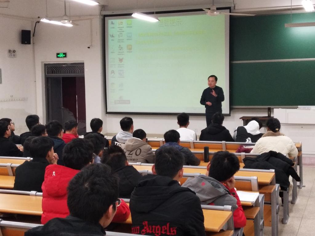 邀请我校原电子信息工程专业92届校友张劲松来校为学生作励志报告。2019级全体新生参加报告会。