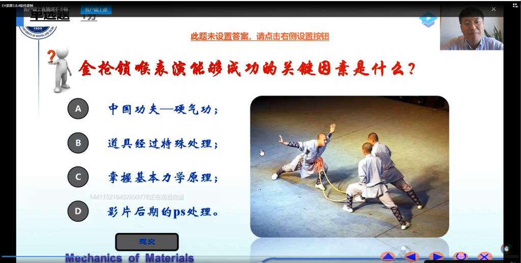 开展线上示范课教学观摩活动。曾获得全国基础力学青年教师讲课比赛一等奖、江苏省工科基础力学青年教师讲课竞赛特等奖的中国矿业大学力学与土木工程学院沈晓明老师,应邀通过腾讯课堂做《材料力学》线上示范教学展示。