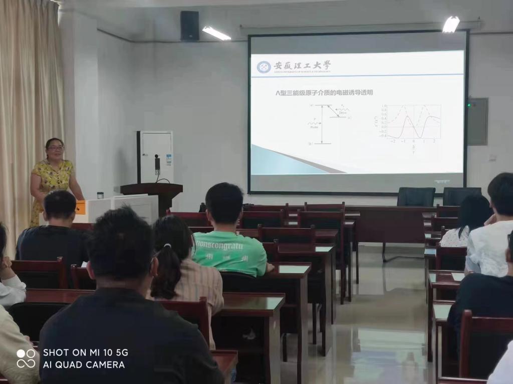 潘桂侠副教授在明道楼A323报告厅做了题为《二能级原子耦合腔光机械系统的多电磁诱导透明研究》的学术报告。学院研究生、本科生及青年教师60余人聆听了报告。