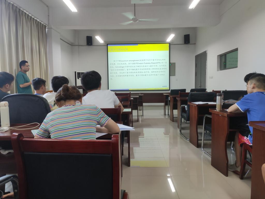 副教授李学超和马建立在明道楼A323报告厅分别做了题为《连续纠缠态的Bell测量与压缩交换》及《新型超硬碳材料结构设计及物性的第一性原理研究》的学术报告。学院研究生、部分本科生及青年教师60余人聆听了报告。
