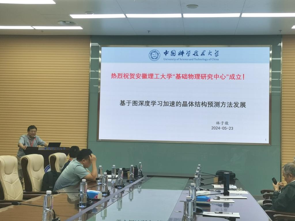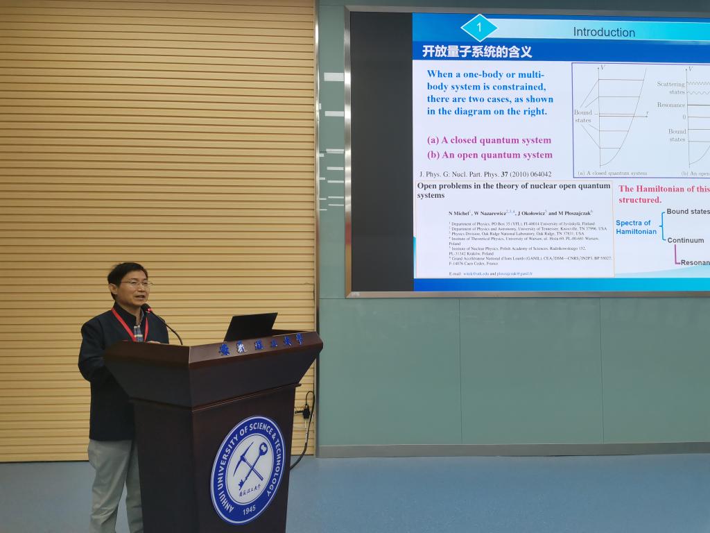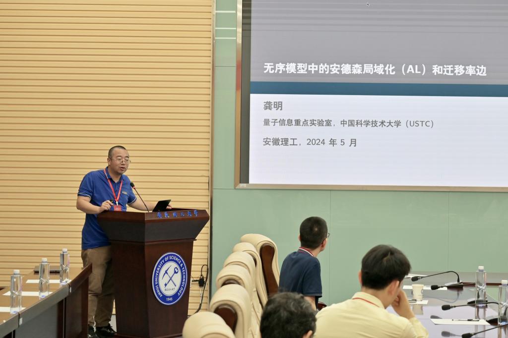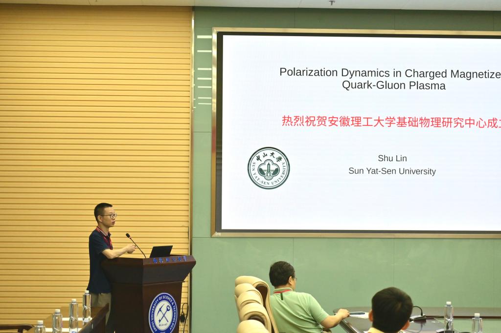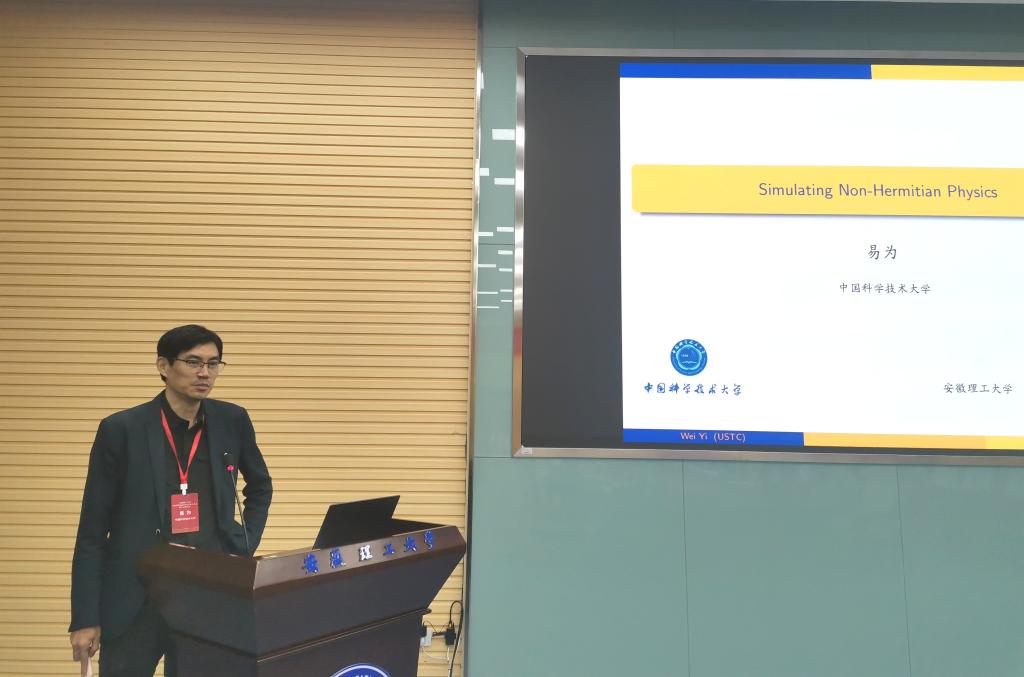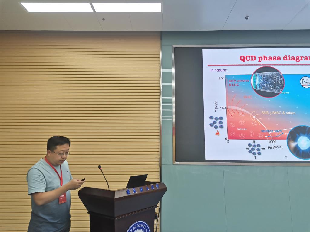 23号下午-25号上午的学术会议由大会报告和自由讨论两部分组成,共计九个学术报告,报告环节由王群教授、中山大学林树教授、中国科学技术大学林子敬教授、华中师范大学侯德富教授主持。中国科学技术大学林子敬教授、易为教授、大连理工大学付伟杰教授、安徽大学郭建友教授、牛中明教授、华中师范大学侯德富教授、中山大学林树教授、中国科学院固体物理所杨勇研究员、中国科学技术大学龚明教授分别作《基于图深度学习加速的晶体结构预测方法发展》、《Simulating Non-Hermitian Physics》、《Ripples of the QCD critical point》、《开放量子系统的理论发展与奇特核研究》、《r-过程研究中原子核质量与β衰变寿命的理论描述》、《极端条件下的QCD物质》、《Polarization Dynamics in Paramagnet of Charged Quark-gluon Plasma》、《量子隧穿和最小空间尺度的存在性》和《准周期模型中的安德森局域化和临界相》的精彩报告。并同与会专家、师生进行了积极交流探讨。会议现场学术氛围浓厚、气氛热烈。会议于25日上午闭幕,王群教授致闭幕辞。