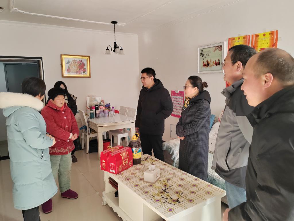 1月25日上午,孙东升等学院班子成员与合作发展处处长刘艳组成的慰问组在学校驻村帮扶干部、新华村第一书记张文涛和村干部的陪同下,赴英伦联邦小区实地走访慰问结对帮扶对象,详细了解帮扶对象的身体状况、生活等情况,并送去了米面油等生活物资和慰问金。