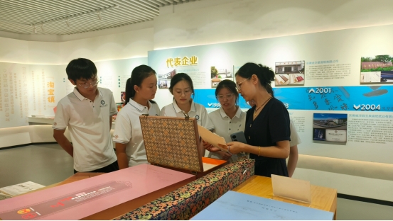 7月10日上午,调研团走进泾县丁家桥镇的宣纸产业园,开启对传统宣纸工艺制作的探索之旅。在园内负责人的引导下,成员们知晓了宣纸产业园的全貌,并逐步了解宣纸1500多年的悠久历史和制作历程,亲手触摸宣纸的原材料——青檀树皮,对宣纸的制作工艺有了直观感知。宣纸制作的六大工艺流程和108道细分工序,其中捞纸、晒纸和剪纸等关键步骤均由手工完成,体现了极高的工艺水平,展现了工艺师傅们追求卓越的工匠精神和中华传统文化的深厚底蕴。