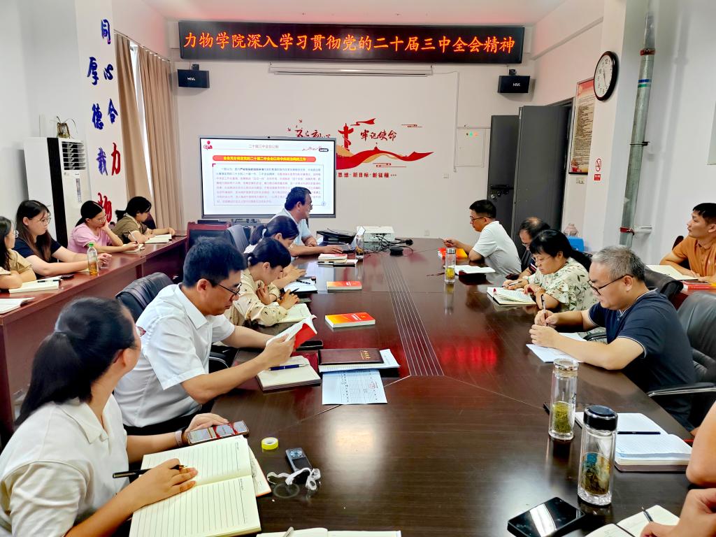 在明道楼A320会议室召开党委理论学习中心组(扩大)学习会,专题学习党的二十届三中全会精神。会议由学院党委书记孙东升主持,学院党政领导班子成员和各党支部书记、系主任、辅导员、相关秘书参加会议。