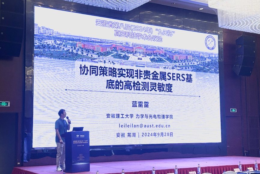 青年教师蓝雷雷博士受邀作了《协同策略实现非贵金属SERS基底的高检测灵敏度》的邀请报告;青年教师童伟博士、硕士生王士暄、肖诚志分别作了《增材制造镍基高温合金微观变形机理研究》、《太阳能自驱动TiO2/Bi2S3异质结检测氯霉素》、《碳化钼表面微观结构构建和析氢催化活性位点调控》的学术报告;肖诚志同学获得了安徽省真空学会2024年“繁枫”优秀论文奖。