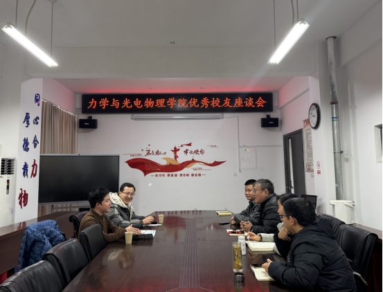 在明道楼A320召开校友座谈会,2003级应用物理学专业校友马佑桥,学院党委书记、教师代表及校友在校辅导员参加座谈会。学院党委副书记郑孝莲主持会议。