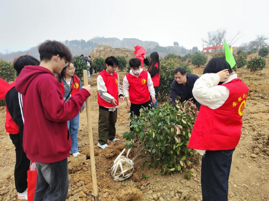 抵达植树地点后,大家迅速投入到紧张的植树工作中。有的挥锹挖坑,有的扶树培土,还有的提桶浇水,现场一片热火朝天的劳动景象。尽管泥土沾满了衣裤,汗水浸湿了衣背,但大家的脸上始终洋溢着喜悦和满足的笑容。在植树过程中,同学们还相互交流了关于植树造林的知识和经验,增进了彼此之间的友谊和团队协作能力。