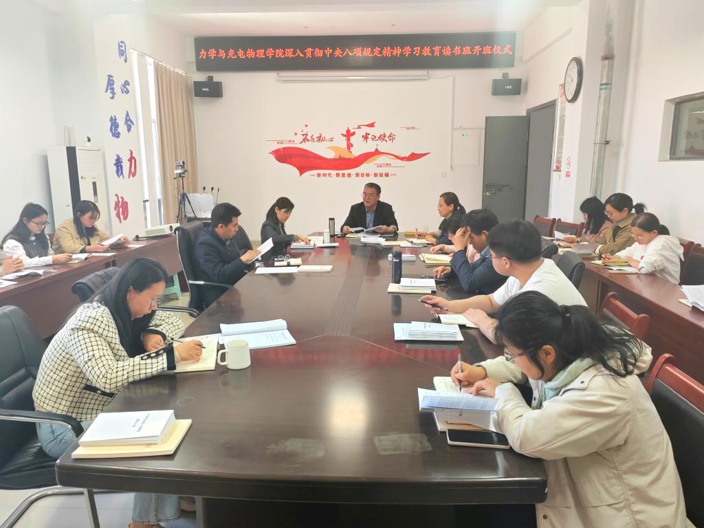 深入贯彻中央八项规定精神学习教育读书班在明道楼A320会议室举办开班式,学院领导班子成员、党委委员、纪委委员、党支部书记、支部纪检委员、院办秘书、辅导员参加开班仪式。