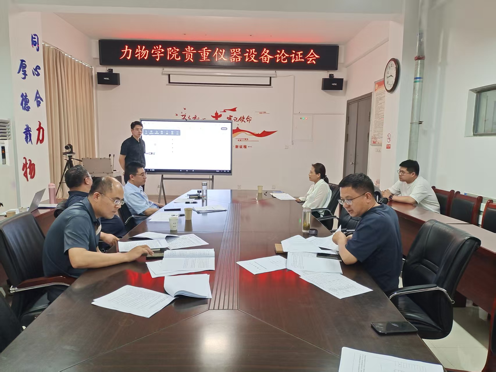 各申报负责人以PPT形式详细汇报了购置必要性、仪器功能、关键参数及软硬件配置。专家组听取汇报后进行了质询,围绕学科特色发展、平台建设、设备采购必要性与实用性、维护管理及配套设施等方面展开深入讨论,最终对每台设备形成论证意见。专家组一致认为,拟入库设备将为学院学科建设、科研与人才培养提供有力支撑,原则上同意通过论证。