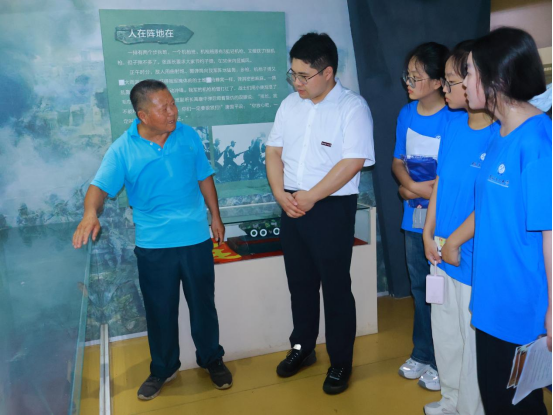 7月7日,团队赴洪泽区西顺河二十六烈士陵园开展红色主题教育。在纪念馆内,通过历史影像资料深入了解二十六烈士为革命事业英勇献身的壮烈事迹。在庄严肃穆的烈士纪念塔前,成员齐诵陈毅将军《梅岭三章》,并采访了守陵人左兆祥。作为革命军人后代,左老师数十载坚守陵园的故事感人至深:“守护烈士英灵是我一生的使命。”这份坚守让团队成员深刻领悟文化传承者同样需要这种持之以恒的韧劲和为民服务的初心。