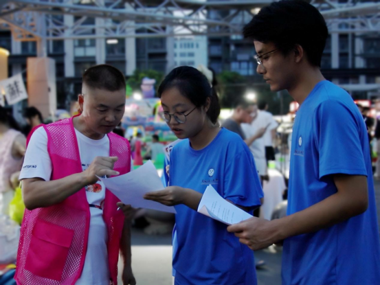 团队走进洪泽湖博物馆,从镇水安澜的康熙铁牛到凝聚171载先民智慧的“水上长城”——洪泽大堤,无不镌刻着历代劳动人民与自然共生的坚韧与智慧。团队实地考察了洪泽湖大堤和三河闸的生态环保价值,并探讨了其与现代可持续发展的联系。成员们沿堤向游客和居民发放环保宣传页,并将非遗保护中“活态传承”的理念延伸应用于生态保护的实践探索。