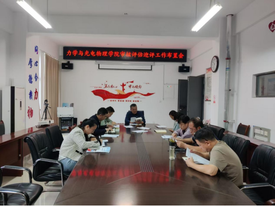 在明道楼学院会议室A320召开审核评估迎评工作布置会,学院领导班子成员、系主任、院办人员参会,副院长卢小雨主持会议。