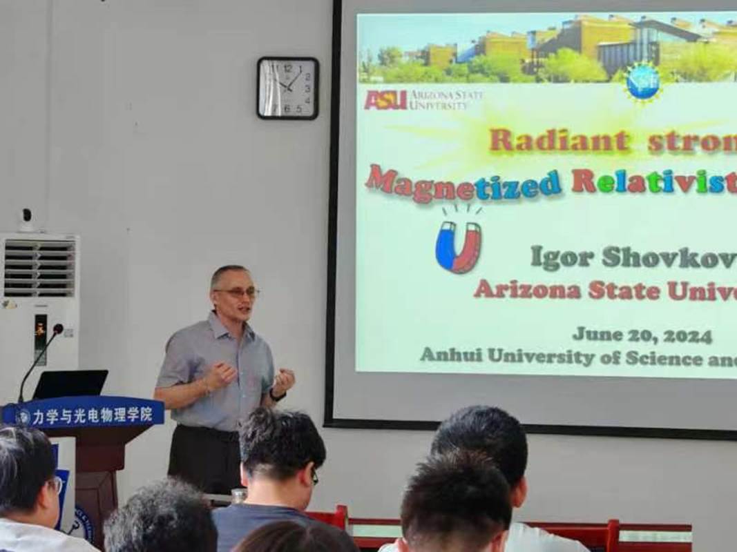 主要负责同志对Shovkovy教授的到来表示热烈欢迎,基础物理研究中心成员及学院部分教师和研究生参加了报告会。