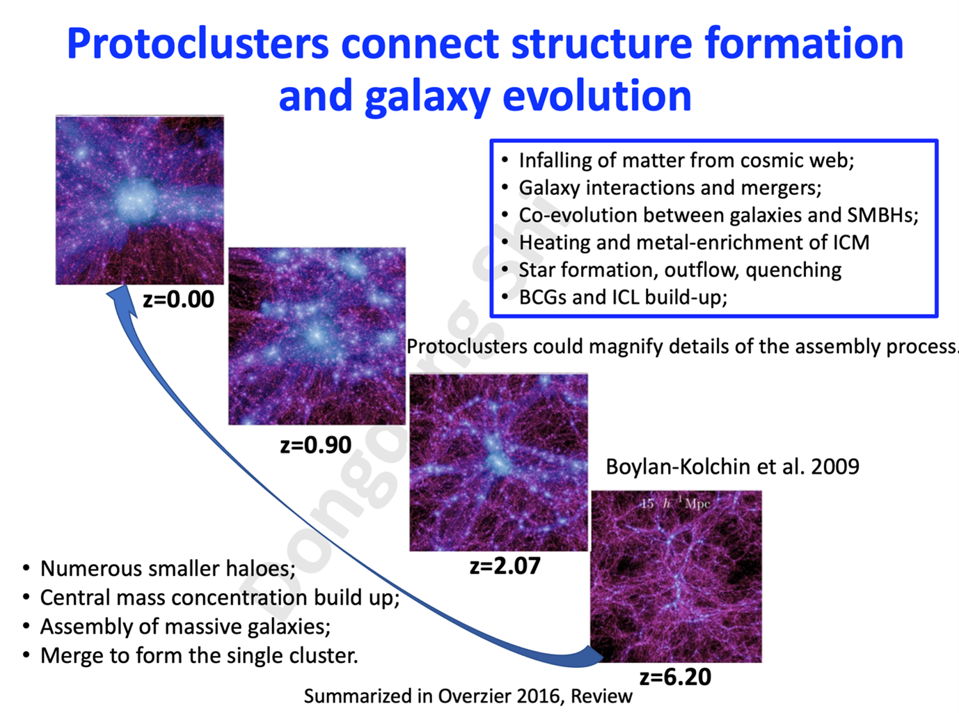 星系团是宇宙中最大的引力束缚系统,是检验结构形成和星系形成理论模型的理想场所。星系团如何由高红移宇宙的原星系团聚集增长、其成员星系的性质如何受所在致密环境的影响是理解星系与大尺度结构演化的关键。原星系团位于宇宙物质网络致密的富气体纤维状结构的结点处,连接着宇宙大尺度结构和星系演化物理过程,是当前河外天文新兴的前沿热点和难点。师冬冬博士详细介绍了当前星系团及其前身(原星系团)的最新研究进展和成果,并就关键科学问题展开讨论。考虑到迄今光谱证认的超大质量原星系团数目有限,试图构建一批大质量致密结构样本,进一步理解环境对星系演化的影响。最后,师冬冬博士与参会老师们积极探讨交流,为后续研究和合作奠定了基础。