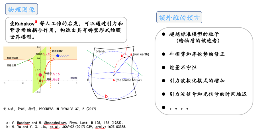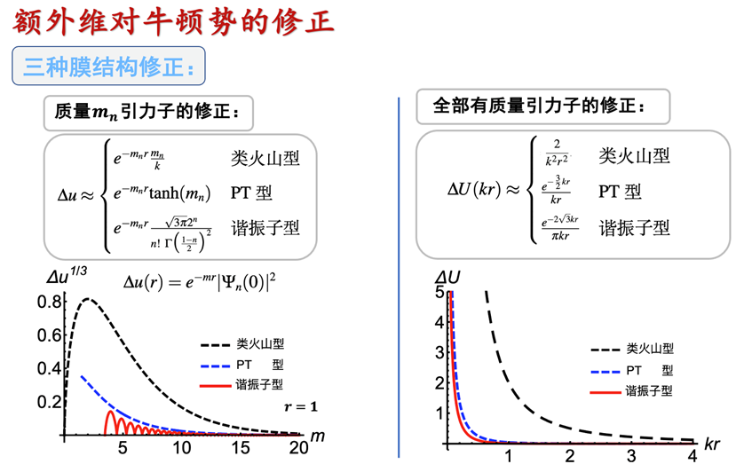 额外维理论作为广义相对论的一种修改理论,揭示了新的时空观并为物理问题的解释提供了新的角度,进而发展成理论物理的重要前沿领域。在额外维理论中,我们生活的四维世界被看作是一张被嵌入在高维时空中的膜。同时额外维理论预言出一系列超越粒子物理标准模型的有质量粒子 (KK粒子),比如有质量的引力子和矢量粒子。这些有质量粒子将对目前观测到的牛顿势和库仑势产生一定的修正行为,并在实验上给出相应的预言。眭陶陶博士详细介绍了额外维理论的物理图像,额外维结构对于四维引力势的修正行为,以及将额外维理论预言的KK粒子作为暗物质候选粒子的质量范围,并就关键科学问题展开讨论。最后,眭陶陶博士与参会老师们积极探讨交流,为后续研究和合作奠定了基础。