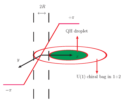 图1.左:单味道重子的量子霍尔液滴构造[1];右:单味道重子的手征袋模型构造[2]。
